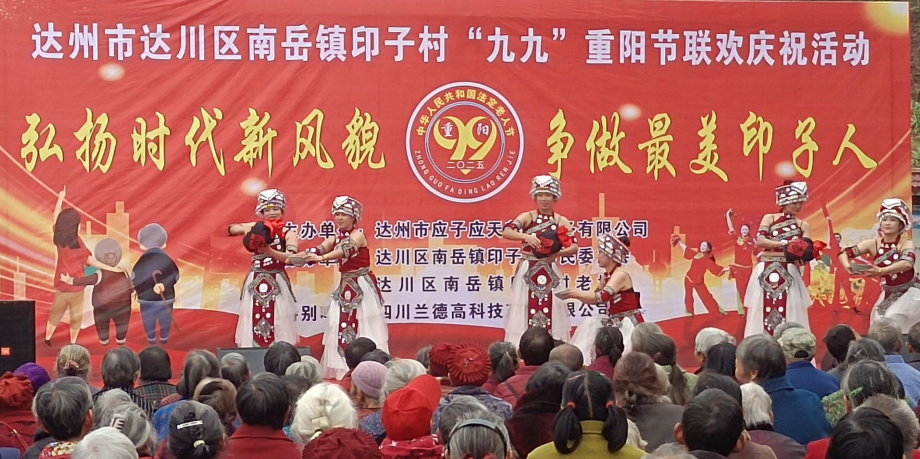 岁岁重阳添暖意,寸心敬老寄深情。为弘扬尊老敬老传统美德,营造孝亲爱老社会风尚,正值九九重阳,10月29日,达川区南岳镇印子村“两委”联合达州市应子应天养老服务有限公司、南岳镇印子村老年人协会、四川兰德高科技产业有限公司,共同举办“弘扬时代新风貌 争做最美印子人”主题敬老活动,以文艺演出、暖心慰问、敬老宴等形式,为村内老年人送上节日的祝福,传递浓浓温情。