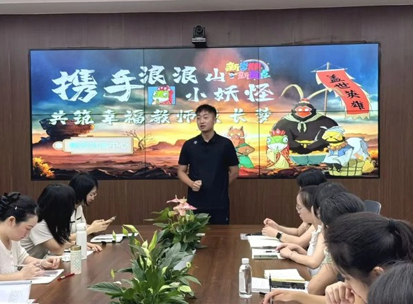 培训伊始,学校教育研究与教师发展处副主任吴娟以“携手浪浪山小妖怪,共筑幸福成长教师梦”为题,详细介绍了为期两天的培训课程。她鼓励新教师以“小妖怪”般积极探索、协作共进的精神,迅速融入实小大家庭。随后,一场别开生面的破冰活动让新教师们快速拉近距离。语文老师的灵动舞步、科学老师的趣味实验、美术与英语老师的动人歌声,展现了讲台之外的多元才华,现场欢笑与掌声不断,团队凝聚力在阳光与热情中悄然形成。