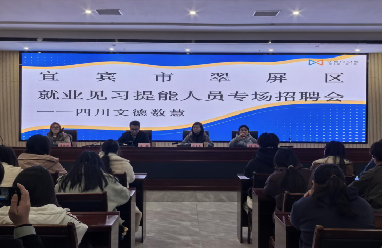 为深入推进就业见习质量提升行动,搭建就业见习提能人员与用工企业的精准对接桥梁,12月30日,宜宾市翠屏区人社局联合四川文德数慧,精心组织100余名就业见习提能人员开展专场招聘会,活动以“政企联动”、“见习+就业”双轨赋能模式,为见习提能人员搭建精准就业对接平台,助力青年群体积累实战经验、实现职业启航。