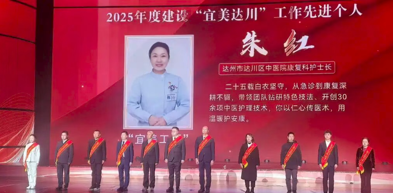 近日,2025年“宜美达川”成果汇报会在巴山大剧院盛大开幕,会上除了缤纷多彩的文艺演出,还表彰了2025年度建设“宜美达川”工作中涌现出的先进个人与先进集体代表,达州市达川区中医医院康复科护士长朱红荣获2025年度建设“宜美达川”工作先进个人。