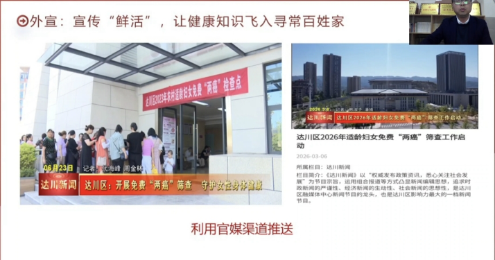 3月31日,达州市达川区妇幼保健计划生育服务中心受邀在四川省2026年“两癌”筛查管理培训班作典型经验交流,分享达川区宫颈癌检出率大幅跃升创新实践与工作成效。