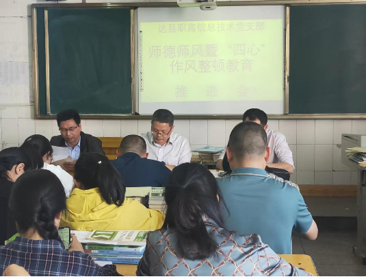 为进一步加强师德师风建设,推进“四心”作风问题教育整顿工作,近日,达县职业高级中学分支部召开了师德师风暨“四心”作风问题教育整顿推进会。会议由各支部书记主持,支部所有教职工(含临聘教师)参加了会议。