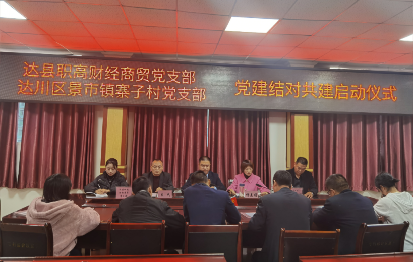 为深入贯彻落实党的二十大精神,充分发挥基层党建引领作用,构建结对共建、双向促进、共同提高的基层党建格局,11月17日下午,达县职高财经商贸党支部与达川区景市镇寨子村党支部在达县职高举行了党建结对共建启动仪式。达县职高党委书记胡知平出席会议并讲话。财经商贸党支部书记李婷廷、学校驻寨子村第一书记庞启波、驻村队员王凌、寨子村党支部书记周青松,以及校村党员代表共同参加了党建结对共建启动仪式。启动仪式由学校党委委员、纪委书记杨美娟主持。