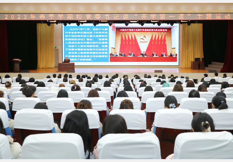 秦晓明以《全面学习贯彻党的二十大精神 在服务建设中国式现代化的进程中更加奋发有为》为题,紧紧围绕党的二十大精神,着眼国际、国内两个大局,重点阐释了中国式现代化的丰富内涵和实现路径,并结合学校实际从建设中国式现代化的内涵特征和主要任务、建设中国式现代化的重大机遇与挑战、成为担当中国式现代化建设重任的可用之才三个方面进行了深入的阐述。他结合该校人才培养实际和青年学生的学习成长规律,对全校同学提出了殷切期望。他指出,青年学生要树立远大的理想与追求,要具备坚定的信念与勇气,要掌握正确的方法与路径,要养成良好的习惯与品行;要从“四心”(感恩之心、仁爱之心、敬爱之心、进取之心)“四力”(定力、动力、毅力、活力)的环节上环环相扣,多方面展现医专学子德智体美劳全面发展的精气神。