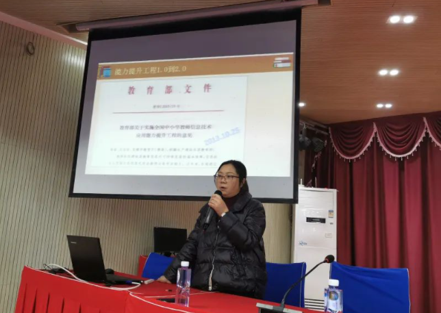 鲁代立主要强调了本次活动的重要意义,希望大家明确目标与任务,勉励大家认真学习,全身心投入,大胆探究,为实现达川区整体信息技术应用能力“三提升一全面”目标而努力。崔华就《信息技术应用能力提升工程2.0解读》,从1.0到2.0的区别,三提升一全面,三类教学环境介绍,如何开展校本应用研修等几个方面做了详细的讲解。随后,罗广武就《三种教学环境下的微能力到校培训》做了详细的解读,并围绕“如何选点、提交材料、指导实践”三个方面,精选了部分优秀的案例进行了点评和指导。罗广武老师还给参训学员介绍了素材搜集的网站或者软件,如希沃学院、国家教育资源平台、知网万方论文下载、GitMind、阿里云……视频、音频获取软件,如猫抓、油猴、硕鼠、AI智能配音……听完专家的培训后,老师们学习热情高涨,积极与专家进行现场互动。