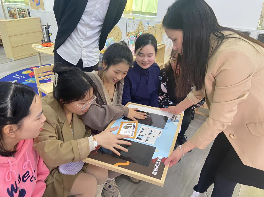 同时,为更好地帮助教师了解园内科探馆材料特性,学会创新使用材料,参培教师们两两一组开展了科探馆材料体验式学习,教师们操作探索科探馆的活动材料,体验其蕴含的游戏性和挑战性,大家思维碰撞,智慧共享。每组教师上台分享科创材料的使用方法,培训讲师分别进行点评并提出指导方案和诸多建议,帮助大家解决科探馆活动开展的困惑和问题,进一步提升一线教师对科探馆材料的使用能力。