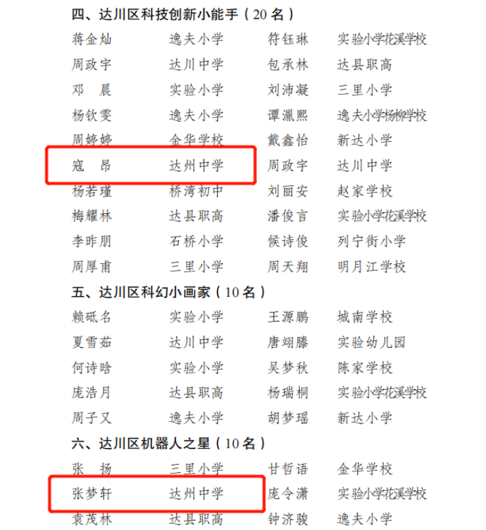 祝贺!四川省达州中学多人获区级科创工作表扬