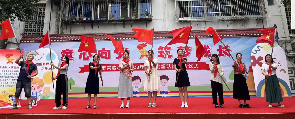 庄严的出旗曲响起,旗手精神饱满,高举队旗,迈着铿锵有力的步伐入场,新队员们坚定自信地注视着队旗,齐声高唱《我们是共产主义接班人》,嘹亮的歌声在空中回荡,传递着队员们对祖国的热爱与崇敬、对少先队的热爱与憧憬。大队辅导员宣读入队名单,老队员们细心地为新队员系上鲜艳的红领巾,新老队员互敬队礼。新、老队员代表讲话,坚定的语言表达了无比愉悦的心情和争做新时代好队员的决心。激励每位新队员发奋图强,为红领巾添彩!随着新队员入队,新的中队也成立了,九面火红的中队旗授予一年级各中队辅导员。