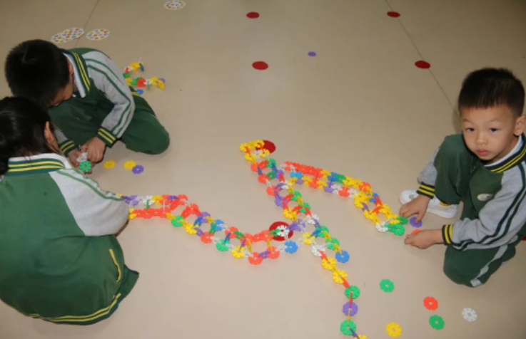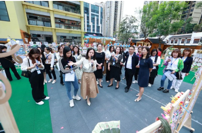 参会人员观摩了大班级幼儿搭建“家乡的桥”的自主游戏。孩子们运用生活中的材料大胆探索、合作尝试,在游戏中孩子的学习成长被看见。