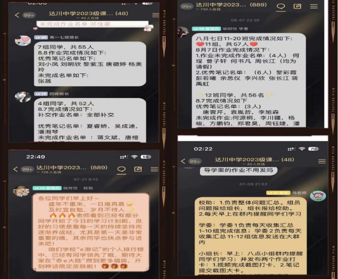 数据显示,在第一阶段7.10-8.2(21天)和第二阶段8.7-8.11(5天)共26天的学习中,2023级学生共1118人登录平台进行学习,平均每个学生使用194节课(微课15分钟/节),学生的使用率高达99%。同学们的参与积极性极高,大部分同学都积极有效地完成当天学习任务,班主任每天跟进学习情况也是极度重视。为他们点赞!