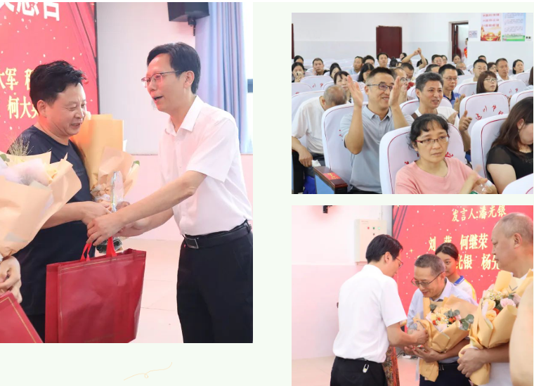 大会第六项,代光兵为荣休人员颁发礼品,表达学校对他们的充分肯定和感谢!学生代表也向辛勤耕耘的老师们献上鲜花,表达对老师的感恩、感激之情!