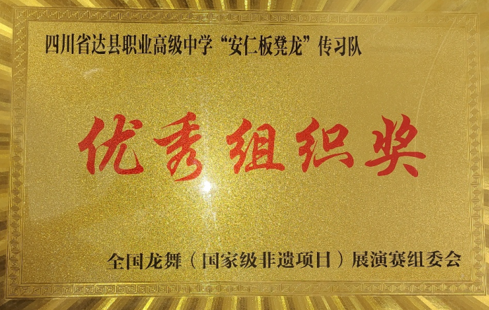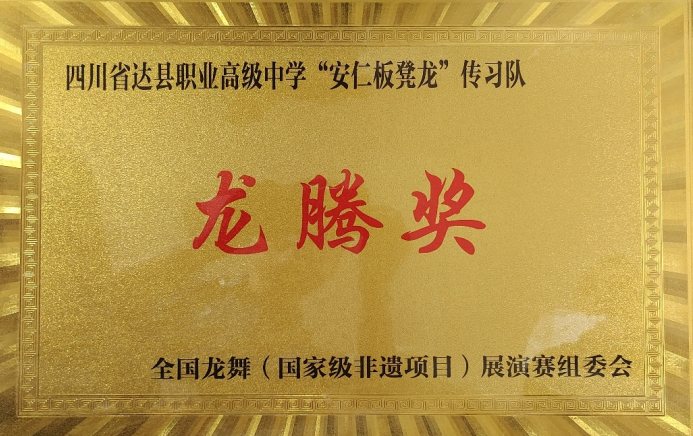 达县职高“安仁板凳龙”代表队应邀参加了本次大赛,赛事规格高,参赛队伍实力强。经过激烈角逐,达县职高龙舞队荣获大赛“龙腾奖”,同时学校作为板凳龙非遗传承基地,还被授予“优秀组织奖”。达县职高龙舞队也是唯一由学生组成的参赛队。稚气未脱的孩子们活力四射、激情奔放的表演,获得了观众们的热情点赞。