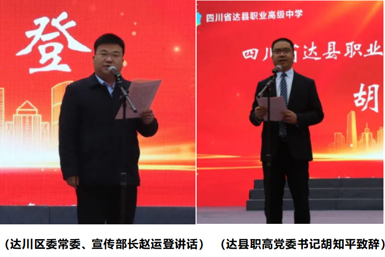 下午,庆祝建校60周年暨区域职业教育高质量发展大会在老校区大操场隆重举行,大会由学校纪委书记杨美娟主持。齐唱国歌后,胡知平热情致辞。他从“六十载岁月如歌、春华秋实,六十载人才济济、桃李芬芳,六十载薪火相传、呕心沥血,六十载励精图治、铸就辉煌,六十载众志成城、深情感恩,六十载甲子轮回、继往开来”6个方面回顾了学校过去,展望了学校未来,表达了对全校师生、历届校友和社会各界的感激之情。达川区委常委、宣传部长赵运登发表讲话,盛赞达县职高建校60年取得的辉煌成绩,激励达县职高发挥职教联盟辐射作用,聚焦互联互通、共建共享、协同育人,聚焦社会需求、专业配置、课程改革,聚焦产业转型、校企合作、产教融合,聚焦以生为本、内涵发展、质量提升,为区域经济社会发展和达州建设“一区一枢纽一中心”培育更多高素质技术技能型人才。