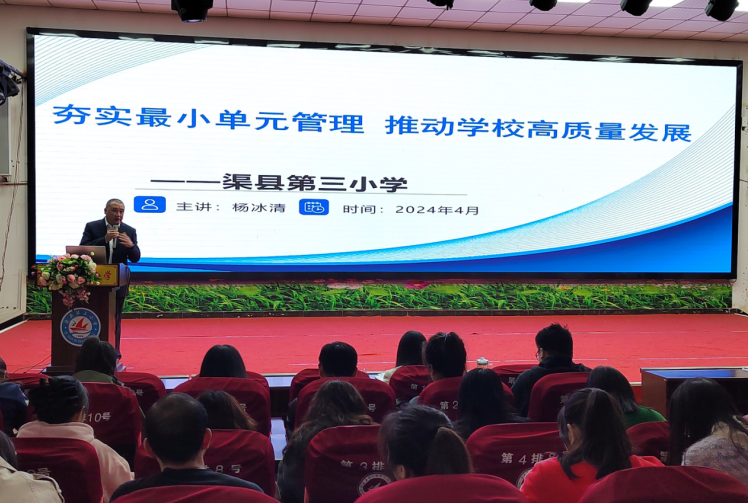 班主任是班级工作的组织者,是班集体建设的指导者,是学生健康成长的引领者,是沟通家长和社会的桥梁。班主任工作是一项复杂、细致的工作,为进一步加强班主任队伍建设,整体提高育人水平,规范班主任工作,2024年4月10日,渠县第三小学隆重召开2024年春季学期班主任工作培训会。会议由该校校长郭娟主持,参加本次会议的有该校党委委员、校级领导、中层干部、全体班主任共计100余人。