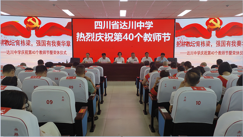 9月8日,四川省达川中学在三里校区隆重举行庆祝第40个教师节暨荣休仪式。学校领导及全体教职工隆重集会,共同庆祝自己的节日,并热烈欢送今年退休的老同志。党委委员、副校长孙仁成主持会议。