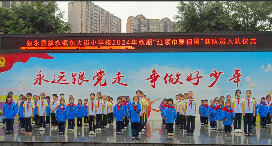 10月12日,叙永县叙永镇东大街小学校举行2024年秋期“红领巾爱祖国”少先队新队员入队仪式,该校二年级274名学生光荣加入少先队。