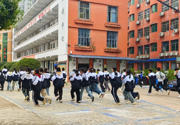 下午2:40,随着警报声响起,消防疏散演练正式开始。宿舍各楼层学生在宿管老师的指挥下,迅速按照预定路线有序撤离到操场安全地带。整个疏散过程紧张而有序,没有出现任何拥堵和混乱情况,从警报响起到全体师生安全疏散至指定集合地点,仅用时1分53秒,达到了预期效果。
