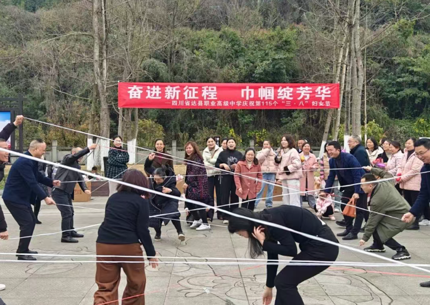 为庆祝第 115 个 "三八" 国际妇女节,3 月 8 日上午,四川省达县职业高级中学工会组织学校女职工赴大寨子公园开展主题为 "奋进新征程·巾帼绽芳华" 户外拓展活动。大家在春日暖阳中度过了一个健康愉悦的节日。 学校党委副书记、校长胡泰然代表学校向全体女教职工致以节日的问候和衷心的感谢。他充分肯定了女性在学校发展中的重要作用。他指出,女教职工们不仅在教育教学岗位上兢兢业业,还在家庭生活中承担了重要角色,展现了新时代女性的智慧与力量。他鼓励大家继续发扬“自尊、自信、自立、自强”的精神,为学校的发展贡献更多力量。 随后,女教职工代表高晓芳老师发言。她结合自身经历,分享了作为一名女性教育工作者的成长与感悟。高老师表示,女性在职业发展中虽然面临诸多挑战,但只要坚定信念、勇于追求,就一定能够实现自我价值。她的发言引起了女同胞们的强烈共鸣,大家纷纷表示要以更加积极的心态面对工作和生活。 为提升女教职工的形象气质,学校舞蹈老师汪丽为大家带来一堂沉浸式礼仪课程。汪老师从着装搭配、仪态举止、沟通技巧等方面进行了详细讲解,并现场示范了如何在不同场合展现优雅得体的形象。女教职工们积极参与互动。参与教师纷纷表示,此次培训不仅掌握了实用技巧,更深刻认识到教师形象对学生成长的潜移默化作用,将以更优雅的姿态传递教育之美。 活动的最后环节是趣味游戏,旨在放松身心、增进同事间的友谊。游戏包括“含水传话”“蒙眼吃香蕉”“穿越火线”“气球不落地”等。女教职工们踊跃参与,男教职工们也纷纷加入助阵。现场气氛高涨,加油声、欢笑声、呐喊声,此起彼伏,高潮迭起。整个游戏过程中,教职工们卸下工作压力,在奔跑、欢笑与协作中展现出教育工作者别样的风景。 此次活动不仅让女教职工们感受到了学校的关怀与温暖,也为大家提供了一个交流学习、放松身心的平台。通过活动,大家进一步增强了凝聚力,激发了工作热情。大家纷纷表示,此次活动既增强了职业认同感,又促进了身心健康,自己将以更充沛的精力投入教育教学工作,为学校高质量发展贡献巾帼智慧。