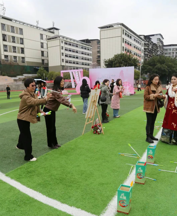 为纪念第115个三八国际劳动妇女节,营造团结、欢乐的节日氛围,3月5日至6日,达州中学举行了系列团体活动,全校女职工共同度过了一段难忘的欢乐时光。 座谈会 座谈会上,党委书记杨勇代表学校向全体女教职员工致以亲切的问候和美好的祝愿,纪委书记杨霜宣读学校表扬决定并对“三八红旗手”“巾帼建功标兵”等先进个人颁奖。 (学校党委书记杨勇讲话) (表扬先进个人) 庆祝活动 庆祝活动在轻松热闹的氛围中拉开帷幕。3月6日早上8:30,女职工们陆续抵达现场签到合影,手中接过的游园卡承载着满满的期待。在背景暖场音乐的陪伴下,大家的热情逐渐高涨。 正式活动环节 正式活动环节丰富多样、趣味十足。集体活动中的珠行万里游戏,各队队员齐心协力,小心翼翼传递高尔夫球,展现出高度的团队协作精神。游戏结束,获胜队伍赢得阵阵喝彩。 游园活动环节 随后的游园活动更是将气氛推向高潮。好运投壶、趣猜灯谜、蒙眼敲锣、招财进宝、趣味五子棋等游戏前,女职工们积极参与,欢声笑语不断。大家在游戏中挑战自我,享受着节日的欢乐。 (好运投壶) (趣味五子棋) (蒙眼敲锣) 此次活动不仅丰富了女职工的精神文化生活,更增强了大家的凝聚力和归属感。女职工们纷纷表示,将以更加饱满的热情投入到教育工作中,为学校发展贡献更多力量。