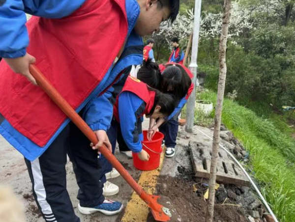 春风拂面,新绿初绽。3月12日,在这个充满生机与希望的日子里,四川省达州中学举行了一场别开生面的植树节活动。本次活动以“共‘树’青春理想,同绘绿色未来”为主题,旨在引导学生们积极参与环保实践,增强生态意识,同时培养团队合作精神。 下午四点半,天光正好,微风不燥,20名志愿者精神抖擞,齐聚在学校阶梯教室。活动在团委书记热情洋溢的讲话中拉开帷幕,讲话强调了植树造林的重要性,鼓励学生们用实际行动为家乡增添绿色,为环保事业贡献青春力量。 随后,教师代表和学生代表也相继发言,他们的话语中充满了对绿色未来的期许和对同学们的殷切希望。“以青春之名,共树理想之林;用炽热初心,同绘未来画卷”,字字句句都是达中师生践行绿色发展理念的最好见证。发言结束后,同学们进行了激情宣誓,并领取了统一的志愿服装,鼓足干劲准备出发,鲜亮的志愿服是春光中引人注目的风景,整齐的队伍也吸引了不少路人的驻足。 一路上,大家欢声笑语,热情高涨。到达目的地后,同学们两人一组,有序地领取了铁锹、水桶等劳动工具。在一片欢快的氛围中,大家合照留念,用镜头记录下了这美好而难忘的时刻。 植树活动正式开始 同学们分工明确,配合默契。有的同学挥动铁锹,挖出一个个深坑;有的同学小心翼翼地扶正树苗,确保它们笔直地站立;有的同学则负责培土、压实,让树苗牢牢地扎根于土壤之中。雨后的泥土或许沾湿了裤脚,但大家的脸上都洋溢着幸福的笑容。 在浇水环节,同学们更是展现出了无比的细心与耐心。他们轮流提着水桶,为每一棵树苗浇上生命之水。清澈的水流缓缓渗入土壤,仿佛为这片土地注入了新的活力。与此同时,还有同学负责清洗工具,他们认真细致地擦拭着每一件劳动工具,为下一次的使用做好准备。 整个活动现场一片活力盎然,在新晴的天空下,棵棵绿色的希望被种下。这些树苗不仅为山林增添了一片新绿,更在社区群众们心中留下了深刻的印象。他们纷纷驻足观看,为达中学子们的团结协作精神点赞。 经过一番辛勤劳动,树苗全部种下,整齐地列成了一道最美的风景线。同学们站在自己亲手种下的树苗前,心中充满了成就感和自豪感。他们向负责协作活动的工作人员礼貌道别,踏上了返校的归程。 返校后,同学们整齐归还了工具和志愿服装,本次植树活动圆满结束。 此次植树节活动不仅增强了学生们的生态环保意识,还培养了团队合作精神和吃苦耐劳的品质。通过亲身参与植树造林,同学们深刻体会到了劳动的意义和价值,更加珍惜身边的绿色环境。相信在未来的日子里,他们将继续发扬“共‘树’青春理想,同绘绿色未来”的精神,为建设美丽校园、美丽中国贡献自己的青春力量。