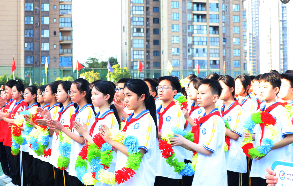 上午8时,伴随着激昂的《运动员进行曲》,入场式正式拉开帷幕。国旗方队、校旗会旗方队、彩旗方队、花环方队率先入场,同学们精神抖擞,步履铿锵,象征着全区青少年蓬勃向上的精神风貌。随后,裁判员方队、运动员方队、志愿者方队依次出场。队员们身着统一服装,高喊嘹亮口号,展示着青春与运动的活力。入场式解说员热情洋溢,将各校的办学特色与校园风采娓娓道来,现场报以阵阵掌声。
