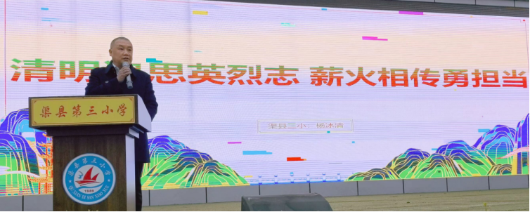 为深入贯彻落实习近平总书记关于思政课建设的重要指示精神,扎实推进党的二十大精神进校园,厚植爱国主义情怀,2025年3月31日,渠县第三小学党委书记杨冰清以“清明追思英烈志 薪火相传勇担当”为主题,为全校6300余名师生讲授了一堂兼具思想深度与情感温度的红色思政课。