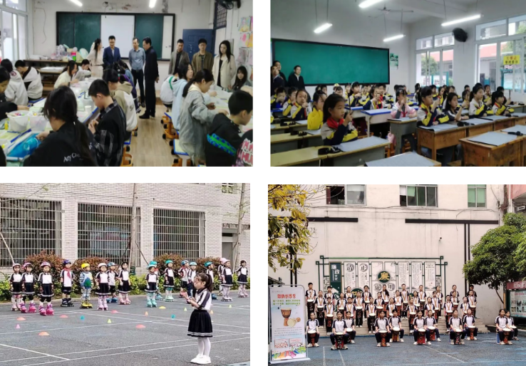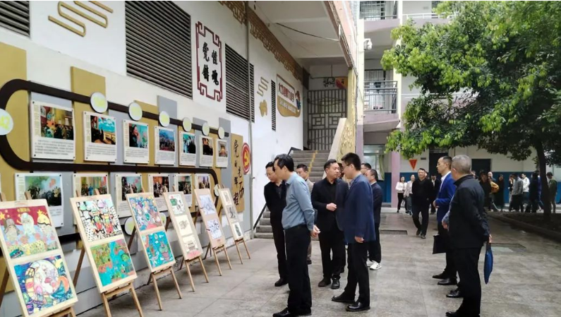在大竹县九小党支部书记、校长黄刚同志的带领下,参会人员深入校园,参观了校园文化建设、课堂教学、校园艺术特色展示等。富有特色的文化墙、充满书香气息的文化廊、设施完备的活动室等,彰显着九小独特的办学理念和深厚的文化底蕴。节奏欢快的非洲鼓演绎,墨香流淌的书法课, 非遗文化的“彩虹课堂”,风驰电掣的轮滑少年,丰富多元的社团活动不仅展示出九小在教学改革方面取得的显著成效,还点亮了孩子们的成长底色。