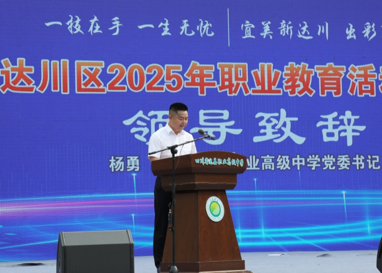 本次职教活动周以“宜美新达川,出彩职教人”为主题。启动仪式上,达川区委教育工委委员、达县职高党委书记杨勇热情洋溢致欢迎辞,他简要回顾了作为“国示”学校的达县职高一路辉煌的发展历程,从学校不断壮大的师资力量,讲到近年来在高考中取得的优异成绩,再到众多学子成才的典型案例。杨勇还向大家介绍了学校“个个成才、人人出彩”的育人理念,展示了达县职高“技能强国、匠心筑梦”道路上的卓越成就。