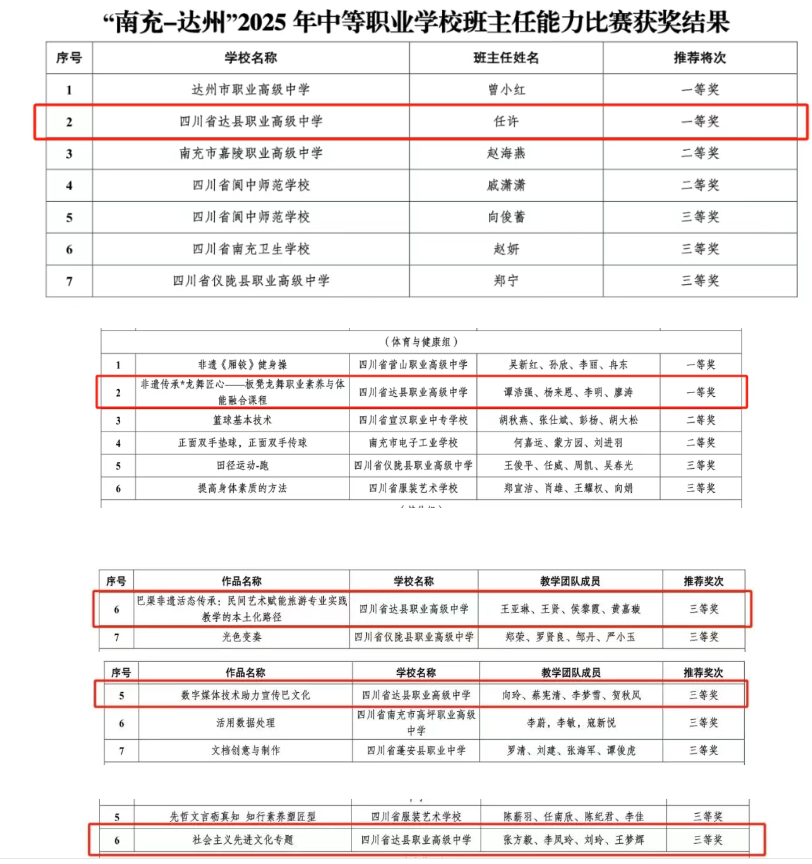 达县职高教师在“南充-达州”2025年教师教学能力大赛暨班主任能力大赛中斩获佳绩