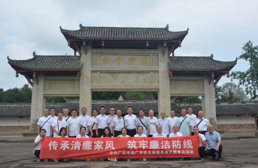 2025年7月1日,值此中国共产党建党104周年之际,为落实党的廉政建设要求,加强党员干部的廉洁自律意识,充分利用本地廉洁文化资源,广汉市金广学校党支部组织全体党员前往德阳市罗江范家大院,现场开展党建廉洁文化教育主题党日活动。