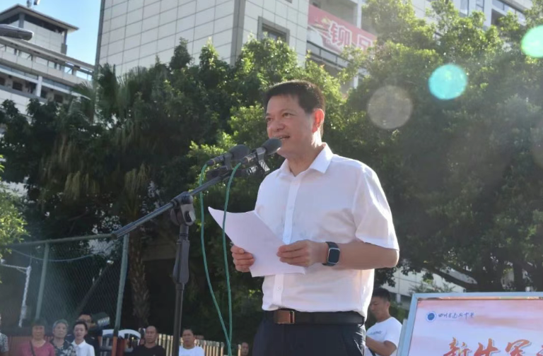 他希望同学们在脱下迷彩换上校服后,能将操场的正步化作课堂的笔步,将训练的口号变作读书的声浪,把军训赋予的自律、坚韧、团结等品质融入高中三年的学习生活中,让“严格要求”刻进日常,让“追求卓越”成为习惯,用“永不言弃”定义成长,让青春在奋斗中绽放最绚丽的光彩。