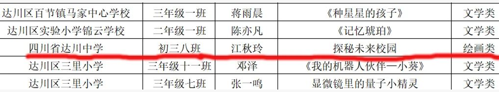 喜报!达川中学江秋玲同学获省级科创作品一等奖
