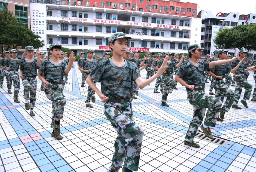 四川省达县职业高级中学高一年级军训日程过半,在完成常规训练任务的同时,同学们积极参与三大特色科目训练,展现出饱满的热情与昂扬的青春风貌,成为校园中一道亮丽的迷彩风景线。 刺杀操:铁血男儿展军人气魄 刺杀操方阵由该校男同学组成,训练时,他们手持木枪,眼神锐利坚毅,尽显少年锐气。随着教官一声令下,同学们迅速进入状态,挥枪、突刺、收枪等动作一气呵成,刚劲有力的姿态中,满是军人的威武气势。此刻的他们,仿佛化身为守护家国的战士,将青春的血性与担当展现得淋漓尽致。 军体拳:阳刚少年释热血豪情 同样由男同学组成的军体拳方阵,训练场上尽显活力。他们精神抖擞地站定,出拳时虎虎生风,踢腿时凌厉迅猛,整套军体拳动作整齐划一,刚柔并济的姿态里,满是少年的阳刚之气。每一个动作都蕴含着力量与技巧,将青春的热血豪情展现得十分到位。 匍匐刀:巾帼少女显别样风采 与前两个方阵不同,匍匐刀科目由女同学组成。这支 “巾帼方阵” 在训练场上同样耀眼。她们手持塑料仿真匍匐刀,身姿挺拔,英姿飒爽。训练过程中,同学们认真聆听教官讲解动作要领,反复练习挥刀、前刺、反刺等动作,每一个环节都毫不松懈,一招一式丝毫不逊色于男同学。她们用坚韧不拔的毅力和勇敢无畏的精神,诠释出新时代女性的别样风采。 此次三大特色军训科目,均由经验丰富的军训教官全程悉心指导。从基础动作的规范纠正,到整体方阵的配合协调,教官们耐心讲解每一个细节,对同学们的训练严格要求。同学们也始终热情高涨,全身心投入到训练之中,在学校操场上掀起了一股刻苦训练的热潮。 此次特色军训科目训练,不仅帮助同学们强健了体魄,更在日复一日的训练中锤炼了他们的意志,让大家在团队协作中培养出强烈的集体意识与团结协作精神,成为本次军训中最亮眼的特色与亮点。