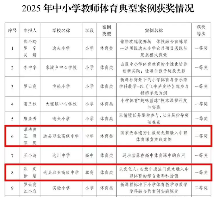非遗融教学 体美绽芳华——达县职高教师在达川区中小学体育、美育典型案例评选中斩获多项殊荣