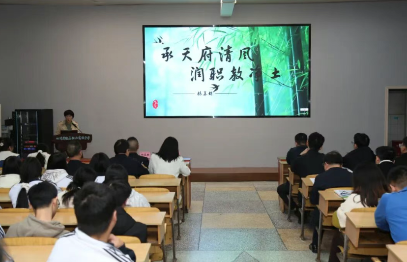 随后,学校党委委员、纪委书记杨美娟以“承天府清风,润职教净土”为主题开展廉洁分享。她从高标定位与全省联动——精心打造浸润人心的廉洁文化盛宴、实践锤炼与能力淬炼——在复杂任务重提升综合素质、收获启示与校园践行——让廉洁之风吹遍达县职高校园这三个方面阐述了廉洁从教对于净化教育生态、培育时代新人的重要意义,号召青年教师以清风正气涵养职业操守,共护职教净土。