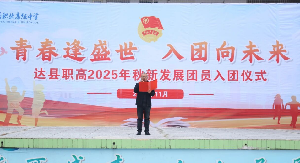 11月24日上午,四川省达县职业高级中学2025年秋新发展团员入团仪式在学校操场举行。本次活动以“青春逢盛世 入团向未来”为主题,全校师生共同见证了这一庄严时刻。