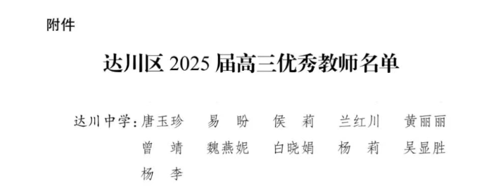 达川中学11名高三教师喜获区级表扬