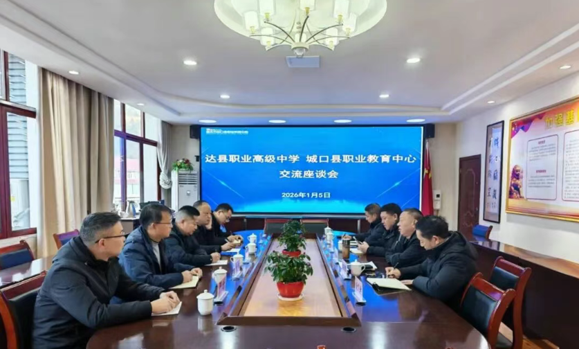 为主动融入成渝地区双城经济圈建设,助力川渝职业教育协同创新发展,1月5日,四川省达县职业高级中学党委书记杨勇,党委副书记、校长胡泰然带队,一行六人赴重庆市城口县职业教育中心开展考察交流活动,旨在学习办学先进经验,拓宽合作路径。 考察期间,在城口职教中心党委书记刘松及校领导班子的陪同下,达县职高考察组先后实地走访了该校大木漆传统工艺工作坊、公共实训基地、京东养车产教融合基地及多个专业实训室,细致了解其在实训场地建设、校企合作模式搭建、产教融合落地等方面的具体实践与显著成效。 座谈交流环节,城口职教中心分享了在校企协同育人、职普融通探索、专业建设与课程改革等领域的成熟经验。达县职高也主动交流了学校在深化产教融合、推动职业教育高质量发展中的创新思路与实践举措。双方围绕合作办学机制构建、人才培养模式创新、专业群建设等核心议题深入探讨,并就川渝地区职业教育资源共享、优势互补达成共识。 此次考察交流,不仅强化了达县职高与城口职教中心的沟通联系,更为两校后续在课程共建、师资互访、实训基地共享等多领域合作奠定了坚实基础。达县职高将以此次交流为契机,积极吸纳先进办学经验,持续深化教育教学改革,深化产教融合、校企合作,与川渝地区职业教育同仁携手,共同提升职业教育服务区域经济社会发展的能力,为成渝地区双城经济圈建设输送更多高质量技术技能人才。