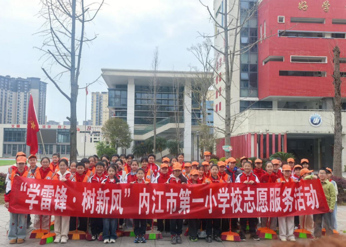 阳春三月,暖意融融。3月4日,内江市第一小学校少先队大队开展"学雷锋、献爱心、我能行"主题实践教育活动,组织红领巾志愿者们走出校园,以实际行动传承与践行雷锋精神。