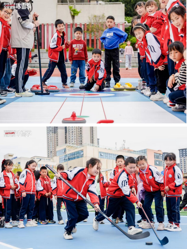 3月25日,四川省第八届全民健身冰雪季“冰雪运动进校园”活动走进全国校园冰雪运动特色校——内江市第一小学校。三、四年级学生足不出校,便沉浸式体验了一场趣味盎然的冰雪运动之旅,操场上欢呼声此起彼伏,热闹非凡。