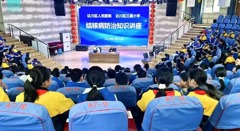 在第31个 “世界防治结核病日” 到来之际,为切实筑牢校园健康防线,落实《学校结核病防控工作规范》要求,达州市达川区人民医院感染性疾病科联合健康管理中心来到达川区三里小学,联合开展结核病防治知识讲座与专项筛查活动,为全校学生送上专业、贴心的健康守护。 活动现场,感染性疾病科与健康管理中心医护人员分工协作,共同为孩子们带来一场生动的科普讲座。聚焦专业领域,详细科普结核病的传播途径、典型症状,重点提醒 “咳嗽咳痰超2周、伴随低热盗汗” 等需立即就医,同时讲解七步洗手法、正确咳嗽礼仪等日常防护要点,引导学生养成良好卫生习惯,消除对结核病的认知误区与歧视心理。讲座过程中,孩子们积极互动提问,现场学习氛围浓厚。 科普结束后,感染性疾病科与健康管理中心医护团队协同开展结核菌素皮肤试验(TST)筛查工作。医护人员严格按照儿童筛查规范,有序组织学生分批检查,耐心安抚紧张情绪,细致完成信息登记与样本采集,确保 “一人一档、全程可追溯”。针对学校关心的筛查流程、72小时结果判定、异常情况处理等问题,医护人员逐一细致解答;若发现筛查异常情况,将第一时间同步学校与家长,指导前往定点医疗机构进一步确诊,严格落实 “早发现、早诊断、早治疗” 原则。 此次活动充分发挥了医院科普宣教优势与专业诊疗能力,通过多方协作实现 “知识普及+精准筛查” 双重防护。后续将持续推动科室联动,深入更多学校、社区开展结核病防治活动,为建设健康达川贡献医疗力量。
