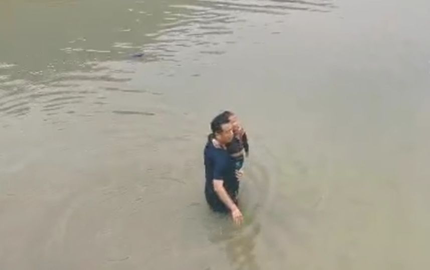 当前,贵州省消防救援总队贵阳支队地震救援队正在四川省马边彝族自治县荣丁镇驻训。5月9日中午12时20分许,救援队员李世超、郭又元两名同志前往营区周边开展例行巡逻检查。巡逻途中,突然发现马边河中有异响,凭着职业本能,李世超和郭又元迅速意识到有突发情况。循声望去,只看见一名小孩的身影在浑浊的马边河中不停挣扎起伏。“不好,小孩落水了!”由于河水已经没过小孩头顶,况且水流湍急,如不施救,孩子必定会有生命危险,情况万分危急。
