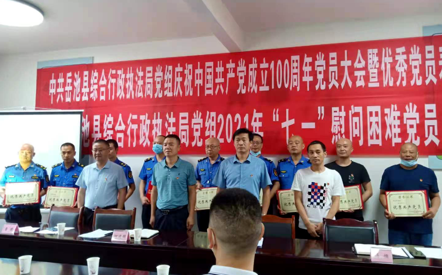 为庆祝中国共产党成立100周年,激发广大党员干部的爱国信念,2021年6月29日上午,岳池县综合行政执法局结合党史学习教育,开展主题鲜明、内容丰富、形式多样、特色突出的系列庆祝活动,引导广大党员干部群众学党史、悟初心,弘扬革命精神,全方位、多角度、营造了庆祝中国共产党百年华诞的浓厚氛围。