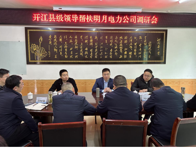 3月29日上午,开江县委常委、政法委书记楚峰一行到四川省水电集团开江明月电力有限公司开展帮扶调研活动,倾听企业心声,助力企业健康发展。县经信局、县统计局相关同志陪同调研。