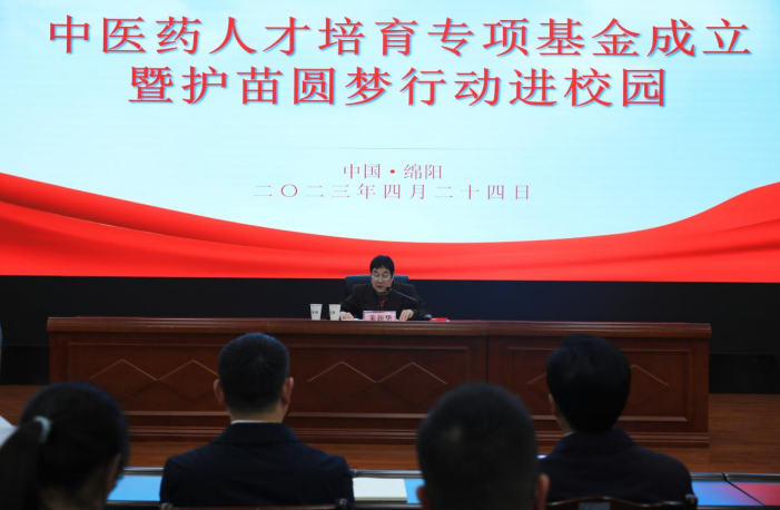 4月24日,四川中医药高等专科学校与四川省玉阶文化基金会在绵阳举行了中医药人才培养专项基金成立大会,朱德总司令孙女、四川省玉阶文化基金会理事长朱新华,基金会副理事长龙腾飞、秘书长谢军、副秘书长蔡建明;四川中医药高专校党委副书记汪涌泉,副校长商碧辉、李祥、梁晓峰、纪委书记李文虎、副校长肖玲及全校中层管理干部、师生代表等参加大会;中国医学职教整合联盟相关成员单位通过线上直播同步收看了大会和朱新华理事长作的专题报告。