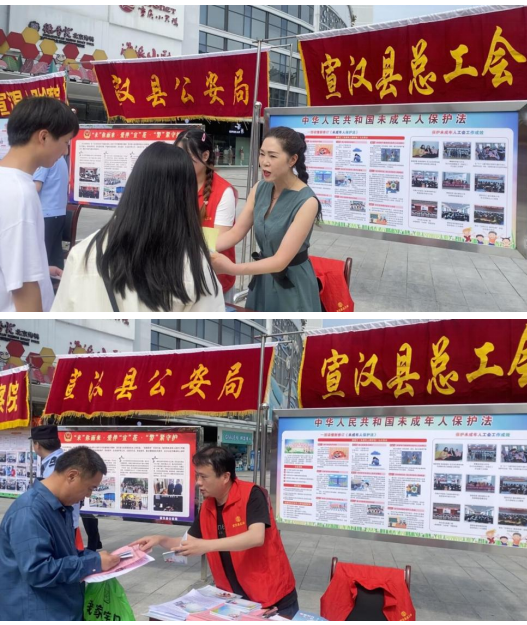 为深入学习宣传和贯彻落实《中华人民共和国未成年保护法》,打造未成年人健康成长的良好环境,守护他们的身心健康,保障他们的合法权益,增强他们的自我保护意识和法律意识,6月14日,宣汉县总工会联合县级相关部门,在宣汉县巴人广场开展以“‘未’你而来,爱伴‘宣’花”主题的未成年人保护等相关法律法规宣传活动。
