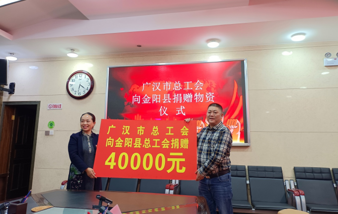 在25日举行的广汉市结对帮扶金阳县座谈会上,邹剑波代表广汉市总工会,与金阳县总工会党组书记、常务副主席周照英签订《广汉市对口帮扶金阳县全域结对帮扶部门单位(总工会)结对帮扶协议书》,承诺2023年10月至2025年底,广汉市总工会将因地制宜,从实际出发,坚持尽力而为、量力而行原则,充分发挥广汉市总工会的特点和优势,统筹安排,分步实施,采取线下线上相结合的方式,切实加强对金阳县工会干部开展培训,提升其理论水平和业务能力,确保结对帮扶工作实效。并现场捐赠给金阳县总工会帮扶资金4万元,支援金阳县总工会加强工会信息化建设。