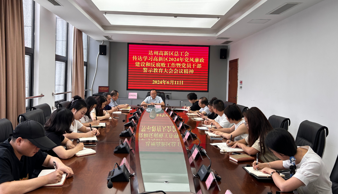 6月11日,达州高新区总工会召开党组(扩大)会议,传达学习高新区2024年党风廉政建设和反腐败工作暨党员干部警示教育大会会议精神。