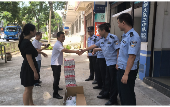 8月11日,渠县有庆镇总工会组织开展夏日送清凉慰问活动。镇党委书记王先东带领党委副书记、镇长杨舒,党委副书记、工会主席王家海一行先后来到有庆镇新兴社区环卫工人工作点、镇派出所等站点,走访慰问户外工作的环卫工人、派出所民警和交警队员等一线职工。为他们送去藿香正气水、金银花露和防暑降温大礼包600余份,把党和政府的关怀以及工会组织的深情厚意送到坚守在高温一线职工群众的心坎上。
