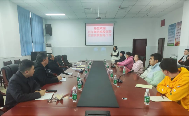 近日,内江师范学院副校长赵明,外国语学院党委书记唐德斌,数学与信息科学学院院长石勇国,物理与电子信息工程学院院长陈湘等8人赴达川中学开展实习生交流座谈会。